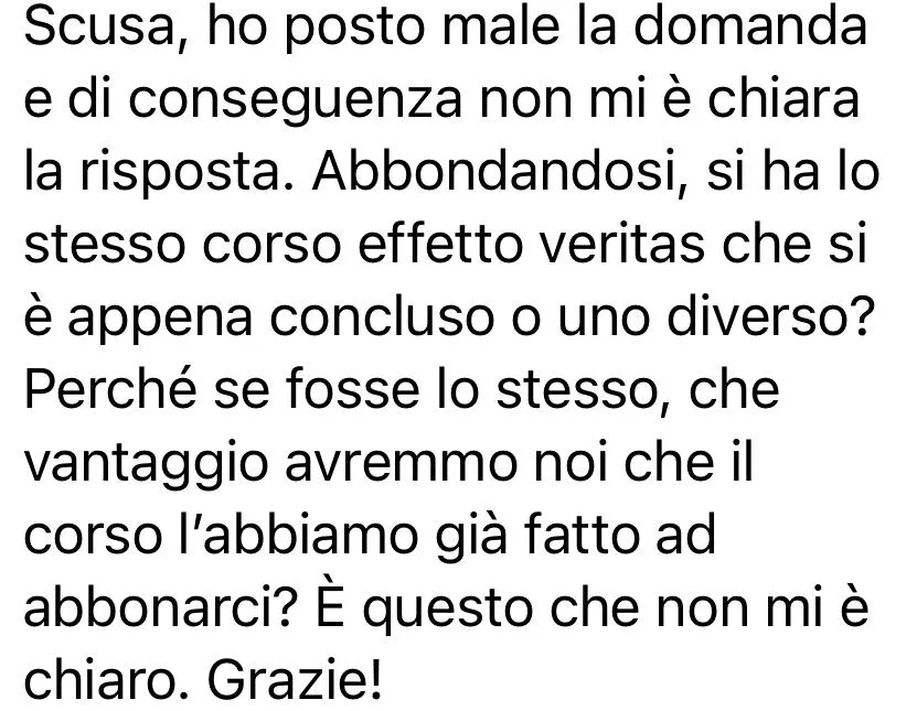 Segui il corso completo, applica le direttive del Sistema Effetto Veritas e osserva i risultati concreti già nelle prime settimane.